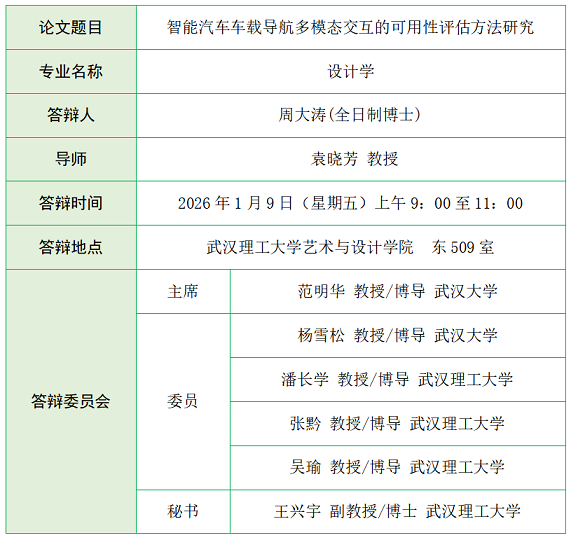 博士学位论文预答辩公告